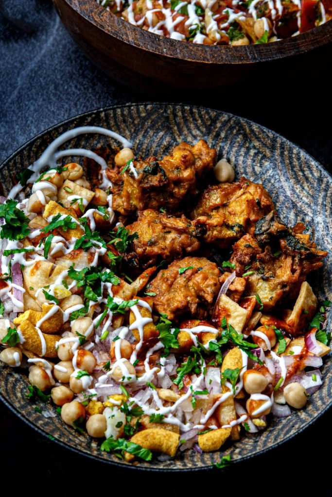 Experience the delightful crunch and tangy flavors of our Pakora Chaat, a popular Indian street food sensation, available at Sula’s Main Street location